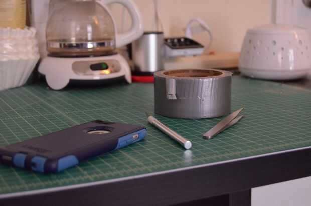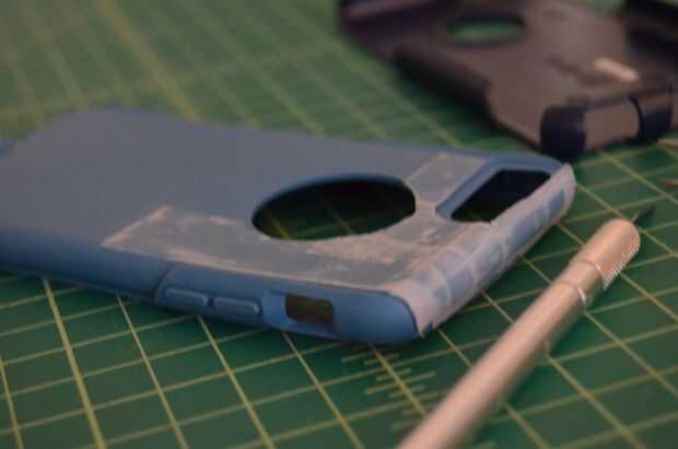 Primero poner dos o tres capas de cinta scotch en el molde de silicona y después montar nuevamente con mi teléfono a ver cómo lo se, pero no era lo suficientemente espesa, ni tenía bastante de una textura "agarre" a la parte no adhesiva para hacer la parte superior de la caja pop fácilmente apagado. Se desató la cinta pato y me puso dos capas de la misma en el caso de la silicona. Use un cuchillo ex-acto para recorte la cinta en su caso hacer la cinta ambos no a través del caso, pero no interrumpen en el caso duro va en la parte superior.