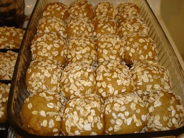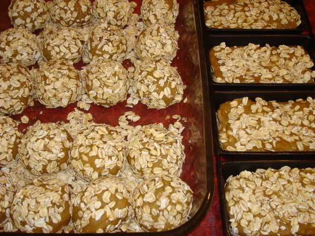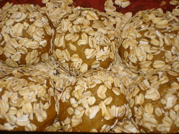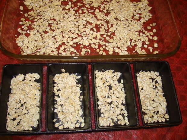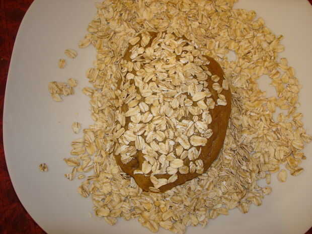 Humedecer el rodillo o el pan con agua y rodillo en la avena.