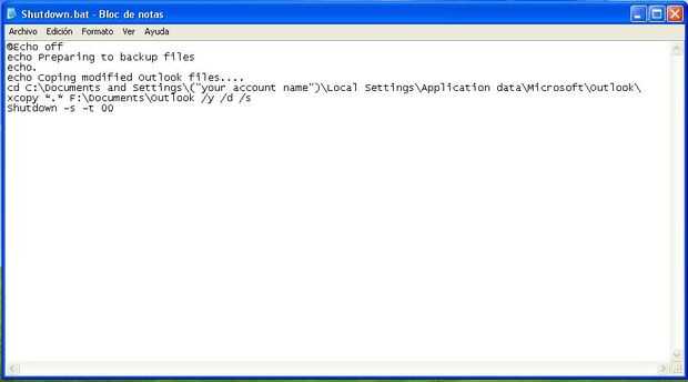 Guarde el archivo como Shutdown.bat en el escritorio.