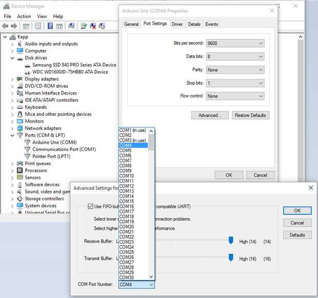 -Averiguar qué puerto USB tu Arduino está conectado, algo como COM3 o COM4. Compruebe los cuadros para entender cómo.