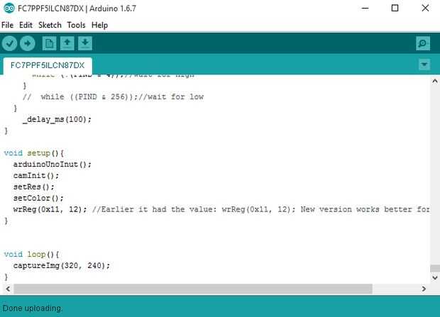 -Si su cmd no no "Encontrar" las imágenes o si recibe fotos revueltos, usted necesita editar el archivo de ino. Editar la línea: wrReg(0x11, 12);