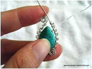el óvalo turquesa diseño en forma de grano envuelto con hilos de cobre adornados con los granos que agrega brillo al pendiente del entorno. Con este tutorial, aprende a hacer espirales y espirales dobles y también aprender a wire wrap con granos. El diseño puede utilizarse también en otras formas de granos como plana detrás de perlas, perlas de lágrima y tal vez incluso granos redondos.
