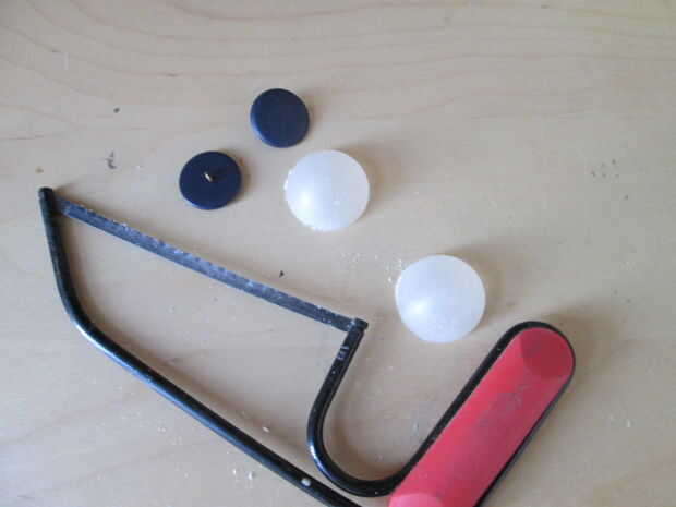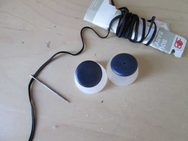 Tomé un poco de inspiración de "La oveja Shaun" y decidió hacer ojos audaces bog. Cortar una pelota de ping-pong en dos mitades. Hacer un agujero en el centro con tijeras o un punzón. Busque dos botones con anillos en la parte inferior. Un pedazo delgado de la venda de elástico del hilo de rosca a través de una aguja y colocar los ojos a través de la cabeza. El mejor resultado será pegar la aguja de un ojo en la parte posterior de la cabeza y hasta otra vez al frente para el otro ojo. El resultado será dos ojos mirando hacia adelante. Me que pones la aguja de un ojo a otro que se ven los ojos izquierdo y derecho como ojos de pájaros.