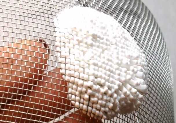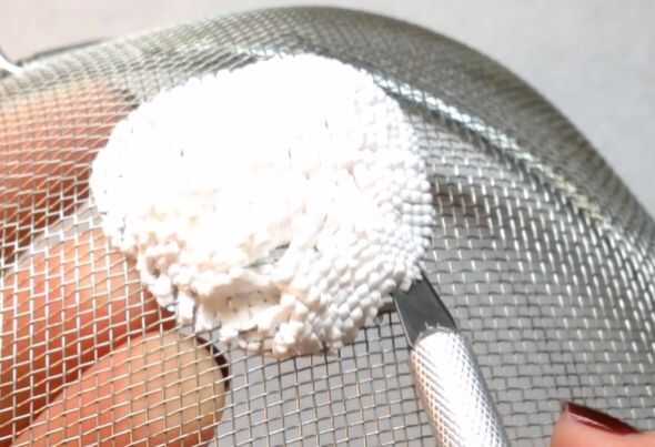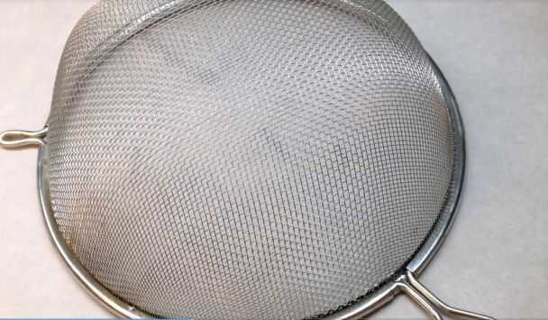 Usando un colador, presiona la arcilla de la parte inferior.