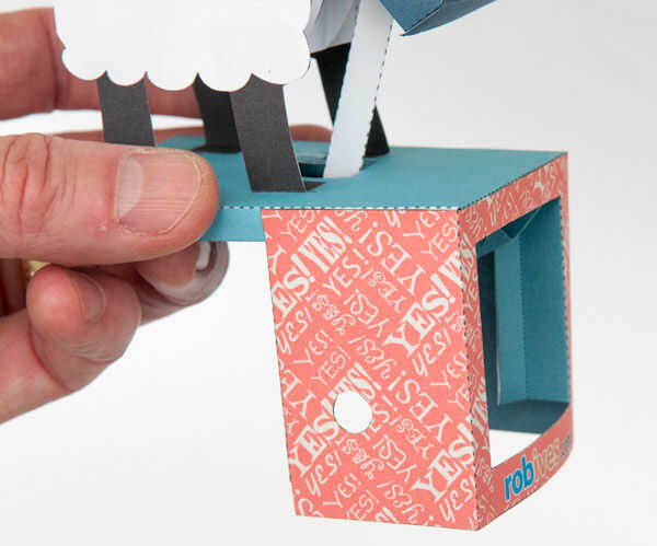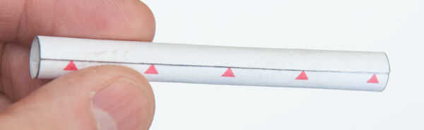 Ruede para arriba el eje y pegamento abajo alineando los extremos exactamente contra las cabezas de cinco flechas.