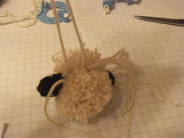 Cortar todos los pedazos largos de hilo. Quería colgar mis ovejas, así que dejó los dos pedazos más largos y atados juntos para hacer un lazo.