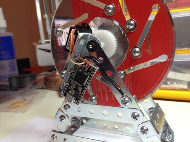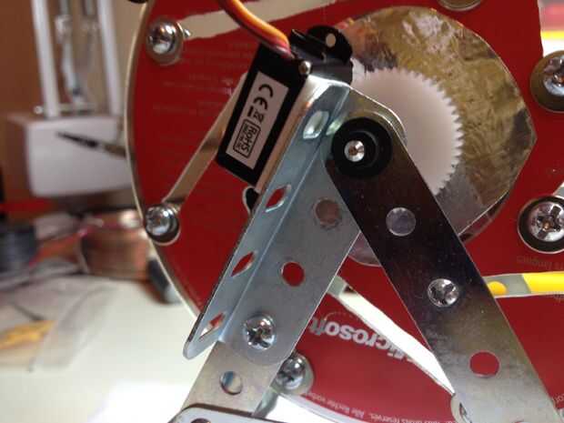 Paso 2: Instale el soporte de ángulo en la parte posterior del bastidor como se muestra y ajustar la posición de los servos engranajes de acoplamiento con el equipo de CD.