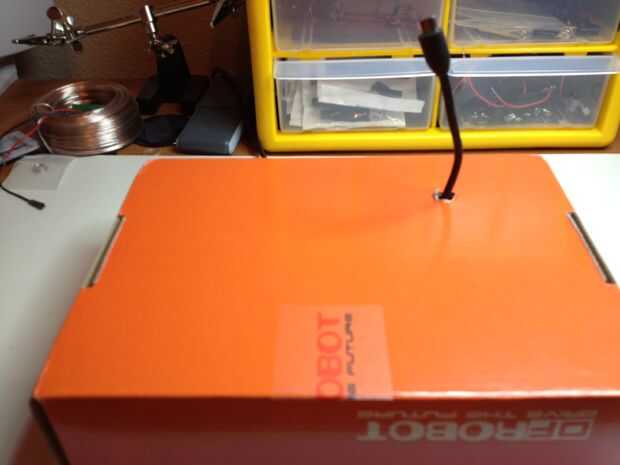 Paso 5: Para ocultar el cable de alimentación USB de vista durante la operación, corte una ranura en una caja o en otra base y acumular el cable USB en la ranura para la placa Teensy. Lazo de enrolle el cable a la estructura si es necesario.