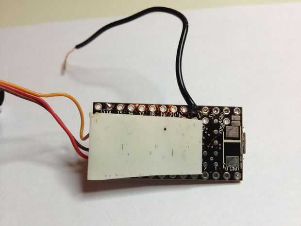 Paso 3: Coloque otro pedazo de cinta de doble cara en la parte posterior de la placa Teensy y fíjela a la parte posterior del bastidor como se muestra.