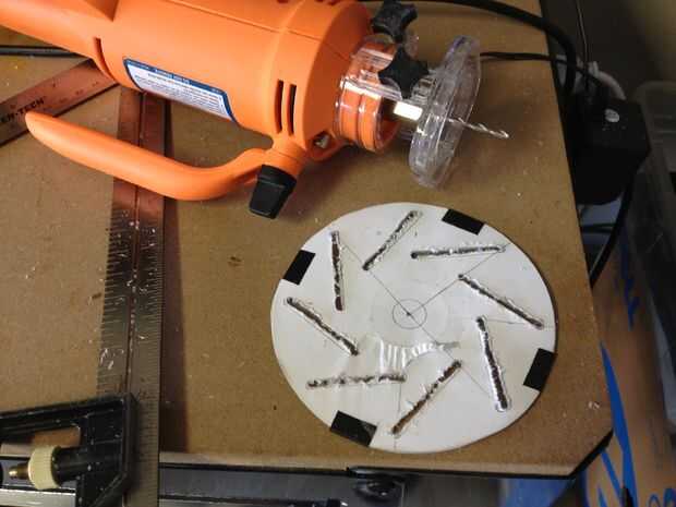 Decidí cortar ranuras en el CD y usar pesas de tornillos, tuercas y tapas metálicas para deslizar hacia adelante y hacia atrás en las ranuras. Pensé que las ranuras necesarias para orientarse desde el centro del CD hacia fuera hacia los bordes para que el peso se deslice "out" como cada ranura alcanzaron el borde caída y deslizamiento "en" cada ranura alcanzada el borde de levantamiento del CD al girar hacia la derecha.