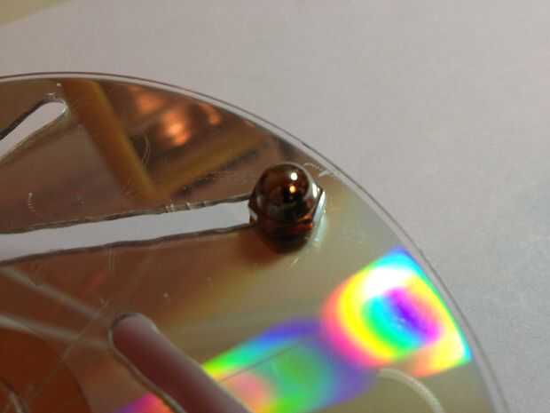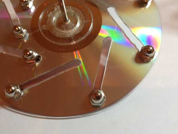 Nota: como se puede ver en las fotos, rasguñó la superficie del CD bastante durante el proceso de construcción. En retrospectiva, debo haber protegido lo mejor durante la perforación, corte y lijado.