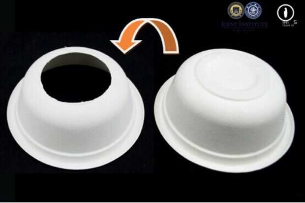 Corte los tazones de fuente para construir el cuerpo del aerodeslizador. (Ver figura 1)