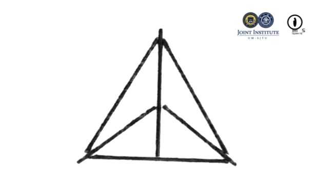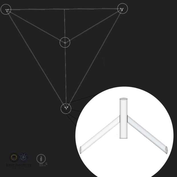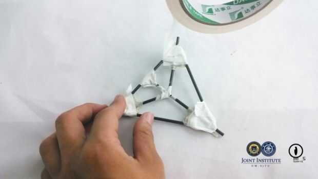 - Utilice la cinta y el pegamento del modelo para conectar las 3 barras más como un triángulo. Agregar a las barras más cortas de resto 3 al triángulo como los bisectores angulares y fijarlas con la cinta y el pegamento.