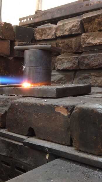 Aire de ebullición es el proceso que se llevando a cabo con nuestra carga. Básicamente como una fundición industrial, estaremos en una rotonda camino hirviendo nuestra lana de acero / rodajes... Como enciende nuestro acero a través de la parte inferior de nuestro cilindro usando un soplete o (Gas y aire) una vez que una porción de amarillo brillante comienza a propagarse - procedemos entonces, suavemente la encender con el suministro de aire - el aire que respiramos contiene 20% oxígeno - hoy en día utiliza hasta un 100%. Pero el 20% es suficiente. Mientras continuamos la temperatura aumenta en varios cientos grados y uno mismo-sostener - sin soplete pero continuó con la línea de aire. El aumento de temperatura es causado por la oxidación del carbono y a su vez nuestro hierro - "Él literalmente comienza a hervir" como los bonos de oxígeno al hierro Fe + O2---> Fe2O3 así se convierte en estado de oxidación Fe + II/III ;-)