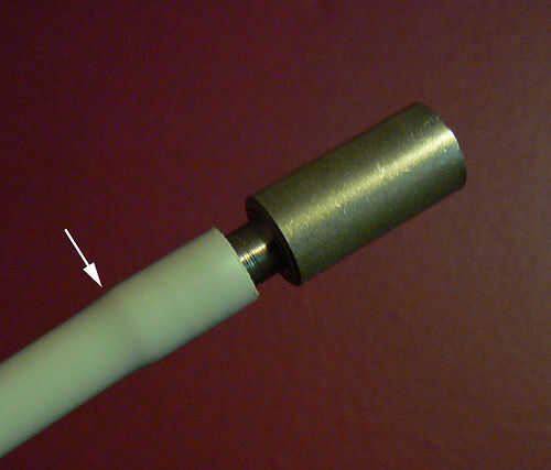 La lengüeta de la piedra es 1/4" y así es el pex... Yo no podía forzar la púa en el tubo a temperatura ambiente, así que me pegué ese fin en un agua hirviendo durante 5 minutos . Cuando el tubo estaba caliente, pude obtener las barbas todo en él (ver foto). No quemarle las manos; Utilice una toalla o para sostener el tubo caliente.