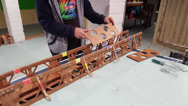 Conectar el último tramo, sección azul (con 8). Poner suelo en y empuje hacia afuera a través de la brecha.