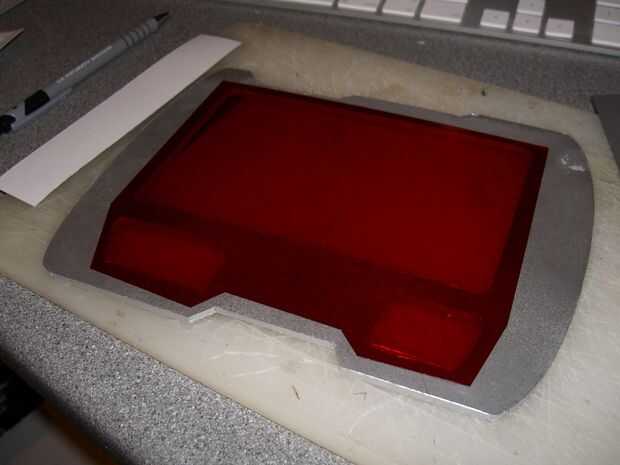 A continuación tenemos que cortar la transparencia a su tamaño, lo usé tenía una capa roja que pelado, cortado a un tamaño áspero, con una capacidad alrededor del exterior de cinta de doble cara.