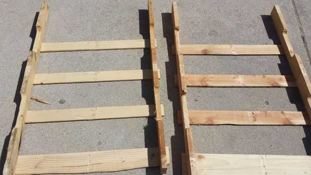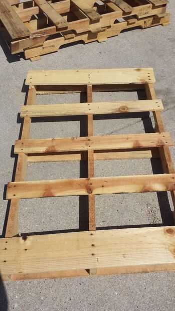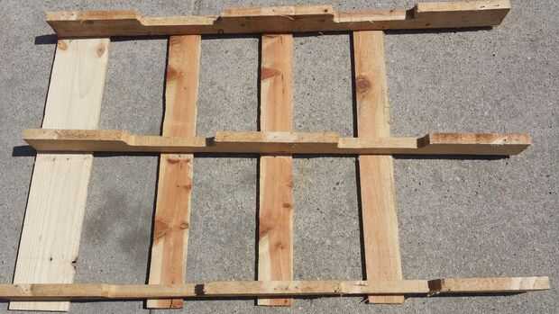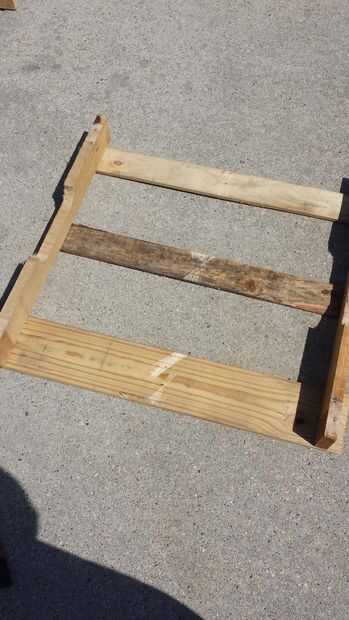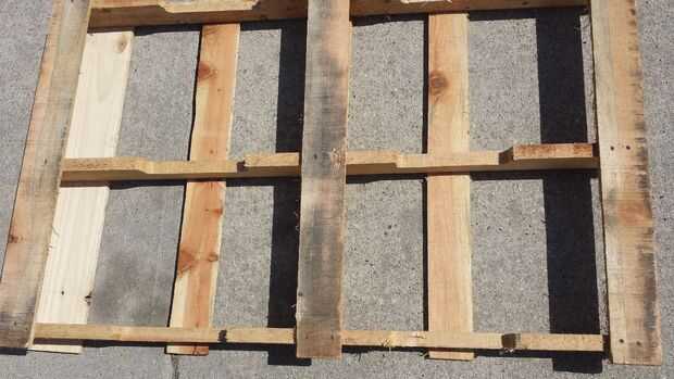 A continuación retirar los tablones de la parte inferior de otra paleta y cortar por la mitad. Tenga en cuenta que sólo usará una de estas mitades.