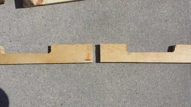Corté cada haz en dos pedazos, hacer cuatro piezas finales, cada 14" largo. Usted puede hacer como larga o corta según sea necesario; Quería que mi proyecto para caber debajo de un alero/canal en el lado de mi casa.