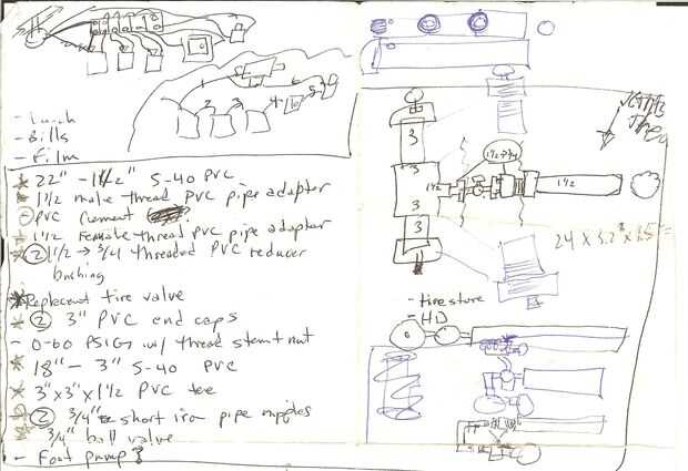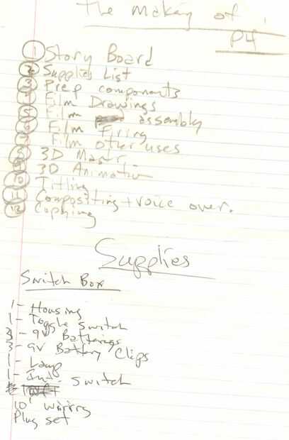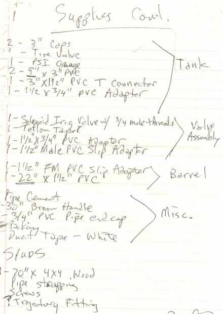 La tercera imagen es mi original intento de dibujar el circuito para el gatillo. Voy a describir en un paso posterior. El cuarto es nuestro plan para hacer el documental y los suministros que necesitaría. El siguiente es el resto de la lista de fuentes. La siguiente muestra la disposición de diseño para la pistola y la caja de disparo, con la lista de piezas para la pistola. La última muestra el prep tuvo partes crudas para la pistola.