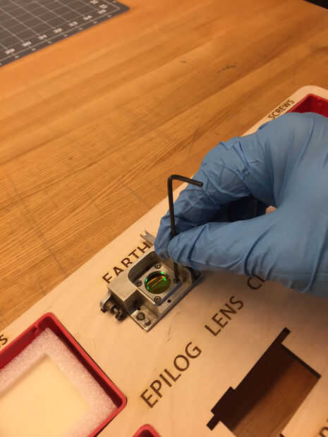 1. Utilice la llave Allen para aflojar los cuatro tornillos que sujetan la lente hacia abajo.