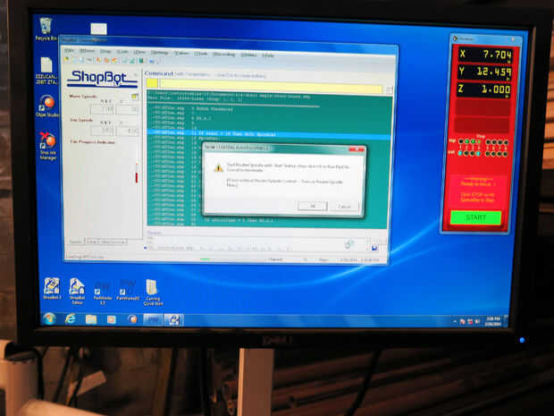 Abra su archivo de trayectoria de herramienta y pulsa Start. Usted será incitado un mensaje de advertencia para comenzar su Router/eje. Asegúrese de que realmente empieces el huso antes de llegar a aceptar en el mensaje de advertencia.