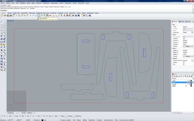 Como se puede ver en la imagen 2, el taburete se adapta en menos de una 4' x 2' madera hoja (que fue cuál es mi mesa de trabajo sobre el ShopBot) y es muy rápido para cortar y montar. Te recomiendo que si quieres hacer toda la familia de productos empiezas con las heces. Puede descargar el archivo de Rhino y STL jugar y editar el diseño. Una vez que tuve todas las piezas planas los dispuestos en la hoja 4' x 2'. Descargar el illustrator o el archivo de Autocad que usted necesita para crear las trayectorias de herramienta.