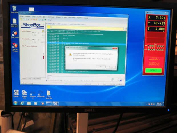 Abra su archivo de trayectoria de herramienta y pulsa Start. Usted será incitado un mensaje de advertencia para comenzar su Router/eje. Asegúrese de que realmente empieces el huso antes de llegar a aceptar en el mensaje de advertencia.