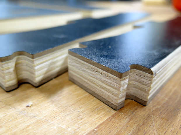 Antes de que realmente montar las piezas que me decidí a los cantos del asiento (3 partes). He probado la madera contrachapada de la melamina negra y no estaba muy feliz con mis resultados debido a la sección de tableros oscuros antes de que comience la capa actual. Sin embargo, si utiliza otro material como madera contrachapada del arce puede hacerlo y se verá muy bonito. Mira las fotos y comparar.