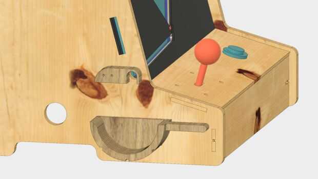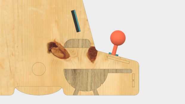 He diseñado una tapa pequeña salida de las bolas al salir del campo de juego mientras se mueven bastante rápido. Este casquillo consiste en tres piezas de madera apiladas que se atornillan en el lado de la máquina. Una vez que las bolas de la tapa, te caen en la Copa. La Copa se basa en tres tornillos que enfrentan de la máquina. La taza sí mismo se hace de 10 placas y costillas de madera pegadas.