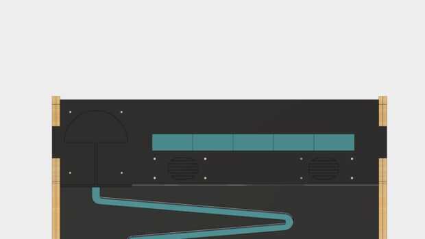 La tolva de la bola consiste en tres lugares idénticos separador de acrílico y una placa base. Estos fije a la parte posterior de la placa del marcador y se sujetan con cuatro M3 x 20 tornillos.