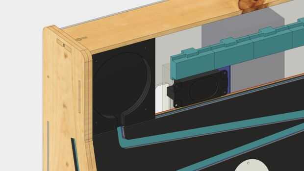 Los altavoces están conectados directamente a los bloques de izquierda y derecha terminales en la placa de sonido. Cada altavoz está asegurado en la parte posterior de la placa del marcador con cuatro M3 x 10 tornillos.