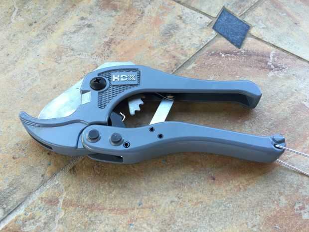 Cortador de PVC con trinquete HDX hace el trabajo mucho más fácil. O puede utilizar una sierra para metales.