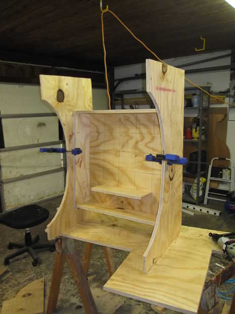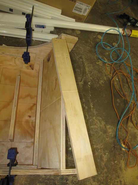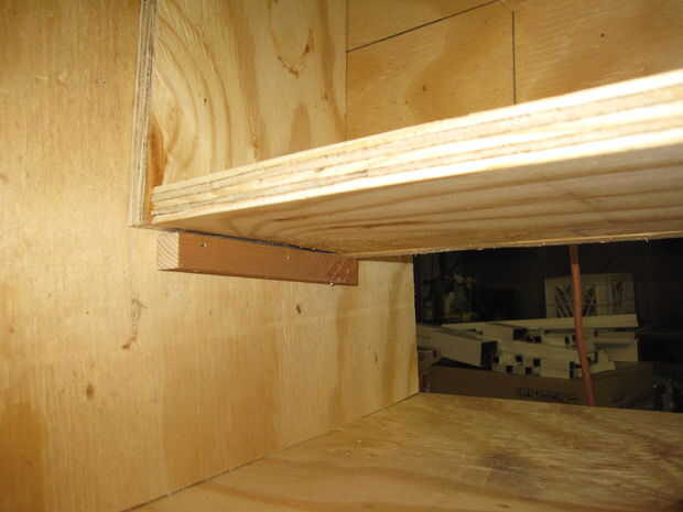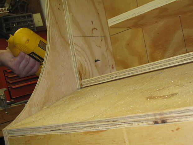 Hay tres piezas más de madera que se necesitan: la parte superior del gabinete, la parte delantera y la zona donde está la palanca de mando. Corte éstos hacia fuera y asegurar a todos ellos excepto la parte superior... deje la tapa apagado hasta el final.