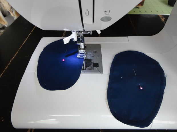 4. coser juntos lona y tela azul conseguir como cerca del borde como sea posible. Lado bueno del azul debe estar hacia arriba y buena parte de la lona debe ser hacia abajo.