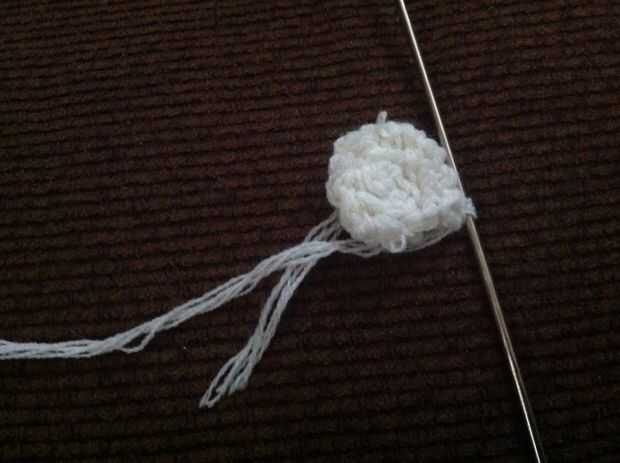Iniciar un bucle y otro círculo con el hilo blanco de ganchillo