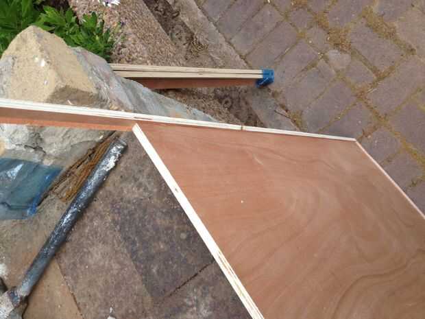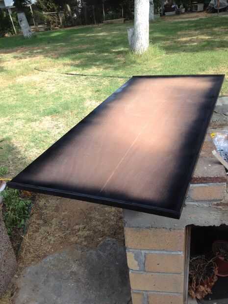 Esta parte es fácil lugar de las madera contrachapada "tiras" que hace marco a cada lado de la hoja de madera contrachapada grande y use la sierra para cortar para crear un marco completo.   Lo coloqué en el centro exacto por lo que sobresale de dos maneras cuando coloco las piedras del mosaico que pueda utilizar el marco como un apoyo y cuando he terminado la parte abajo, ayuda para estabilizar la cubierta sobre la mesa.   He utilizado 5 clavos en cada lado, cuando el marco está listo - spray pintar el marco negro (o cualquier color usted eligió para el fondo).   Lo siento sobre el ángulo de las fotos - no pude encontrar una forma de rotarlos después les subí.