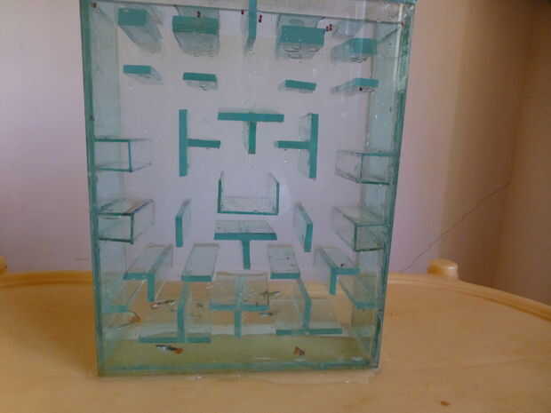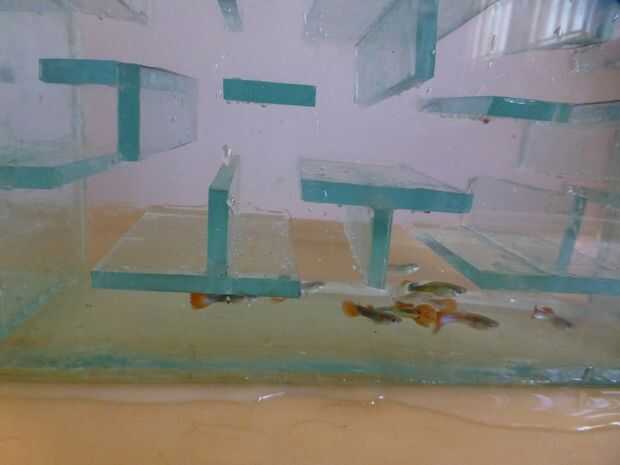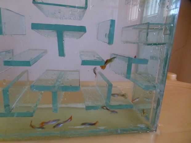 un tanque de peces con temas de Pac-man construido con vidrio. El diseño se basa en Pac-man para dispositivos android. pueden ver la captura del mismo.