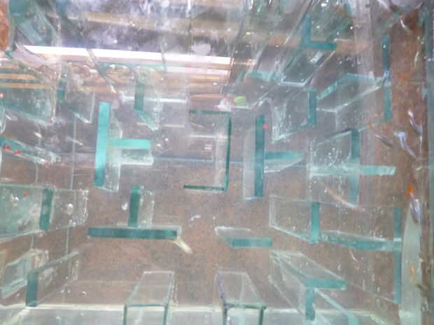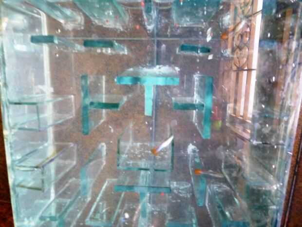 Puede agregar agua y peces al tanque. Tengo peces muy pequeños que pueden moverse a través del laberinto sin ninguna dificultad. Estos peces también no crecen grandes y son adecuados para este tipo de tanque.