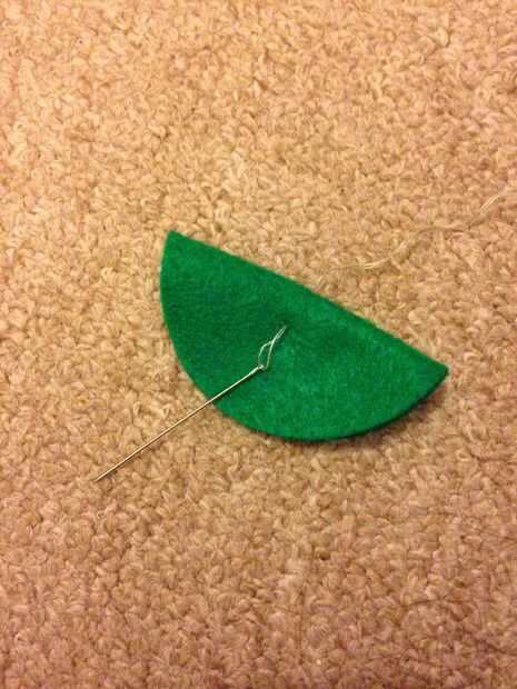 Doble el círculo de fieltro por la mitad y, a continuación, inserte la aguja y el hilo...