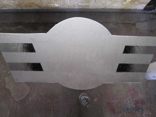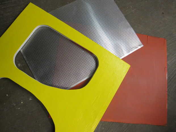 Para la parrilla delantera del coche, utilizar una hoja de metal de rejilla respaldada por un pedazo pintado de madera contrachapada de 1/4.  Asegure las 3 capas con clavos.  Utilizar más madera para hacer un emblema para la parte delantera del coche.