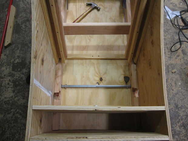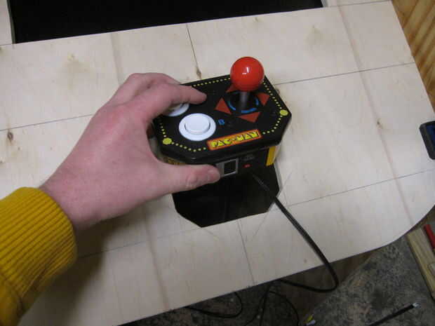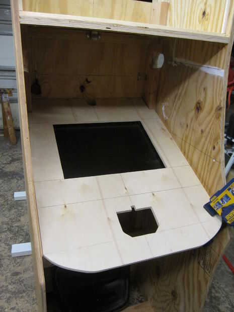 Cortar una pieza de contrachapado como la superficie gameing. El tamaño del televisor va a determinar el tamaño y la forma de la abertura. Seguimiento de la unidad de juego y corte un orificio para insertar la unidad de juego.