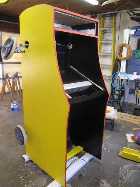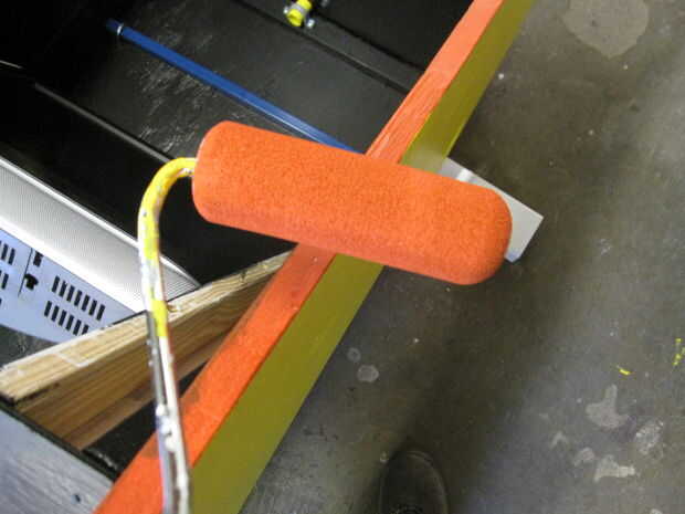 Pinte el interior negro y exterior amarillo. Puesto que el coche se paró cuando se juega debe pintar la parte inferior también hay una mirada acabada al coche. Un detalle que no debes perderte es que los bordes del armario son de color naranja. Usar un rodillo de pintura para aplicar naranja pintura ot los bordes.