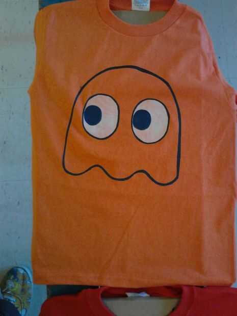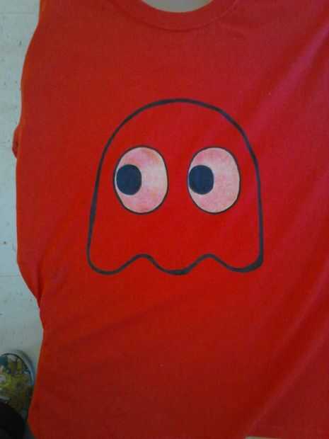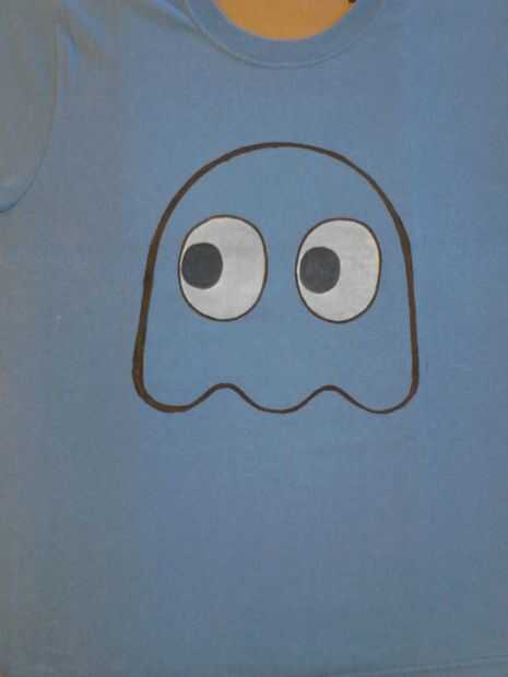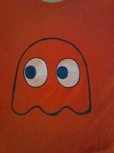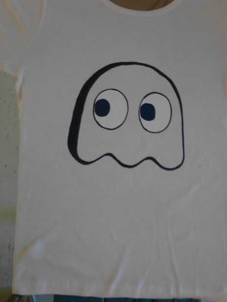 Pintura negra en el contorno de los fantasmas, de cereza, y pac-man.
