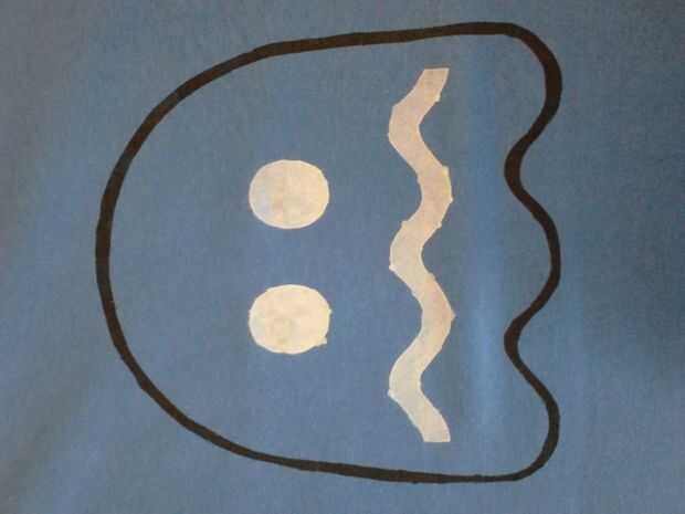 Retire la plantilla en los fantasmas de boca onduladas y pintar cuidadosamente el fantasma azul