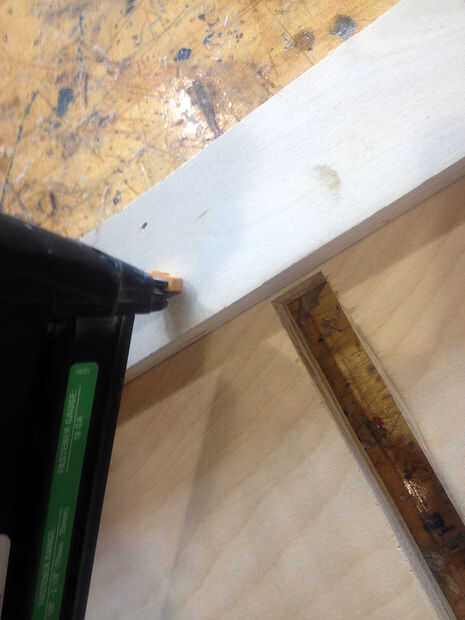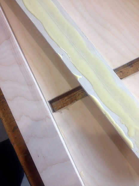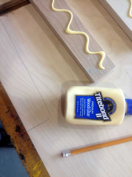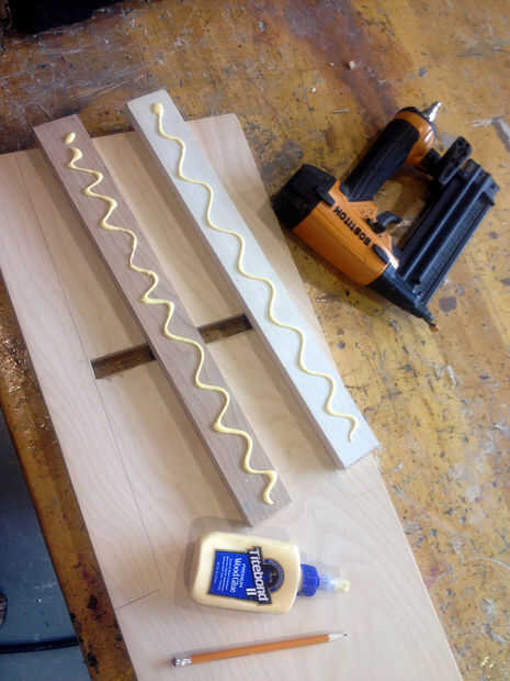 Después de lijar largo aproximadamente las dos tablas de 2 "x 18" añadir un garabato de cola para madera. Suavizar con un dedo o una vieja tarjeta de crédito / tarjeta (la mejor herramienta para utilizar). Colocarlos al ras a lo largo de los lados y la parte inferior. * Nota * la parte inferior es acusado por la medición de 8" hasta la ranura (no de la 21" longitud). Entonces puede fijarlo con la abrazadera y dejar cocinar durante unas horas. Personalmente, me lave los lados y utilizar a mi clavadora para asegurarlo en su lugar por lo que yo puedo seguir trabajando.