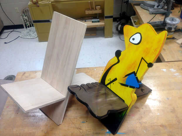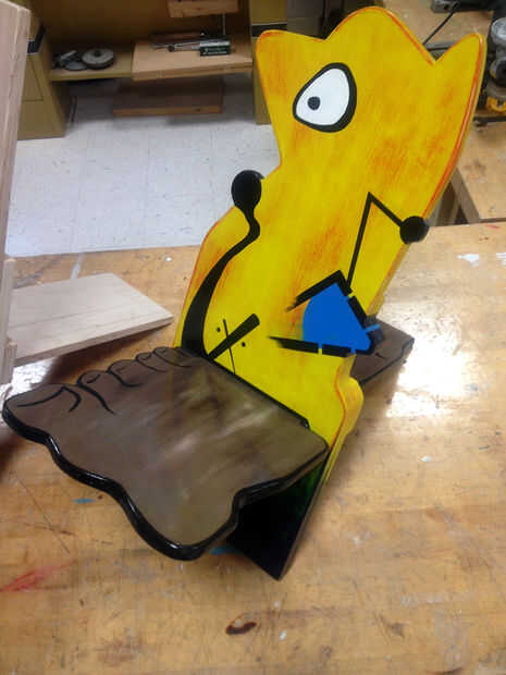 Cuando este proyecto a mis alumnos, creo que el diseño es perfecto para basarla en un artista o crear tu propio personaje. Este particular se basa en uno de mi artista favorito: Joan Miró. Muchos aspectos de sus pinturas creó un personaje como la parte de atrás y luego hizo el asiento de uno de sus pies pintadas. Establecido esto por lo que si mientras que enseñanza alguna vez poner mi pie en mi boca tengo un lugar para sentarse.