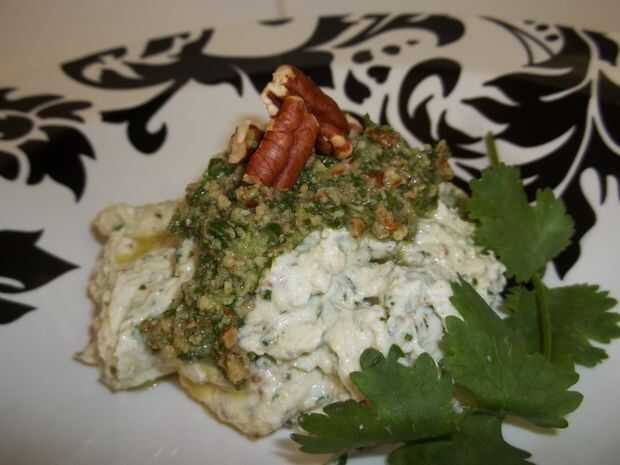 siempre estoy en la búsqueda de un sabroso y fácil de hacer plato de cena de Navidad para nuestro lugar de trabajo. Este año he hecho un queso pesto la extensión, que es una variación de una bola de queso que en forma de una corona de flores y adorna