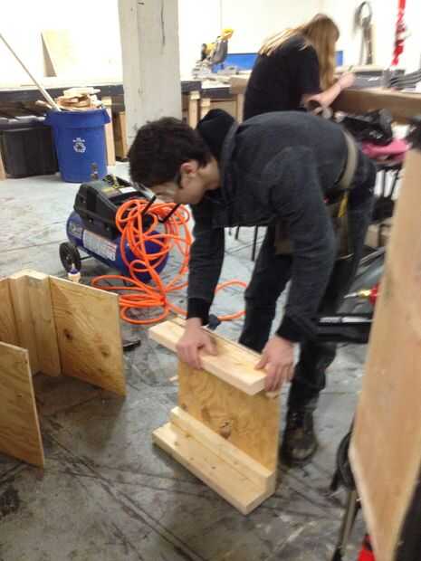 Para encajar las piezas vas a tener que usar pegamento para madera en el exterior dentro de los bordes de la madera de la capa (que ya han cortado). Luego sostenga con las abrazaderas en C. Después de que usted piensa que el pegamento ha fijado, tomar el y usar una pistola de encuadre, clavo los lados juntos. Si usted se mete en cualquier forma o modalidad, utilizar una palanca para deshacer las uñas y vuelva a intentarlo. O si sientes que el daño es demasiado, entonces usted probablemente debería comenzar de nuevo.