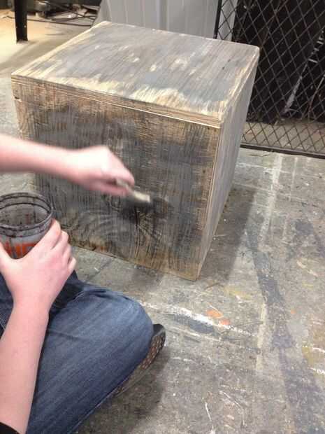 Después arenas pintura fue hecha a las cajas para darle una especie de mirada desgastada algunos rústico. Usted puede elegir pintar el cajón o simplemente lijar [los cajones] y dejarlas ser. Plantillas entonces fueron agregadas a la caja para darle ese aspecto final de ser una caja militar. Las plantillas fueron aerosol pintado en con pintura en aerosol negro. Luego deberá agregar asas al lado o arriba de la caja.